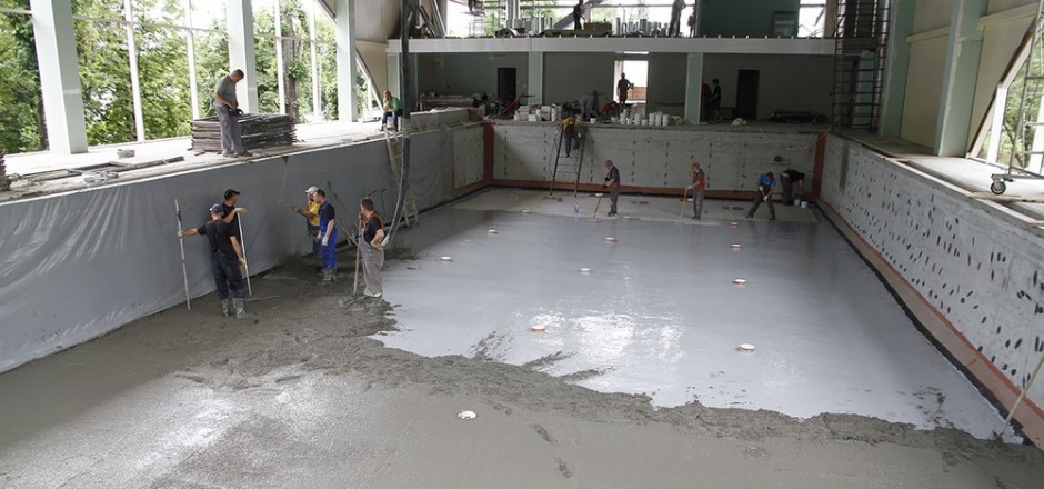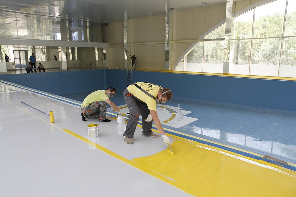 When implementing this project, we used TM ANKOPLAST polymer materials for finishing the swimming pool bowl, as well as the coating around the bowl. Ankoflor U. poured floors are installed on the stairwells.
