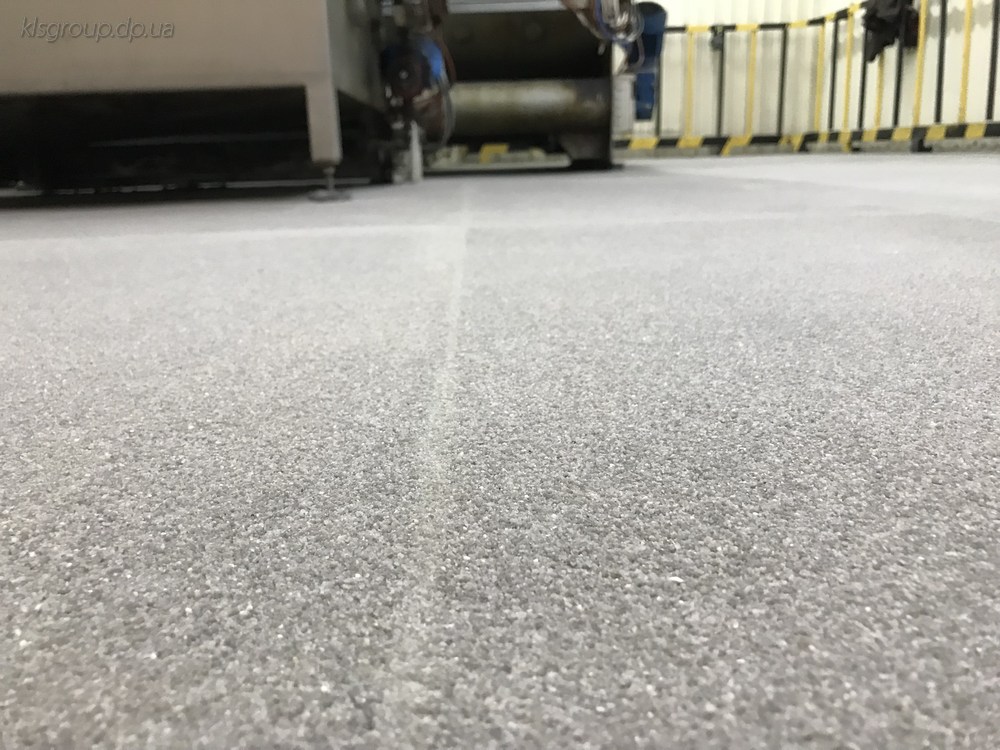 TM KLSFLOOR quartz epoxy systems are designed to protect floors that are used in medium and high loads, the average coating thickness is 3mm, the surface of the floors is textured, glossy, withstands loads from rokla and falling objects, as well as from the movement of pallets over the surface of the floors. Main Base Materials – Primer Е-102/131, base layer Е-801/210 and finish layerЕ-3011.
